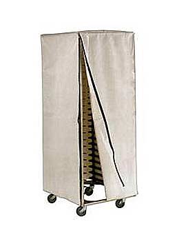 Чехол для загрузочных тележек предназначен для хранения готовых хлебобулочных изделий. Изготовлен из армированой пленки или других материалов по запросу клиента. Две застежки-молнии. Прозрачная сторона для визуального контроля.