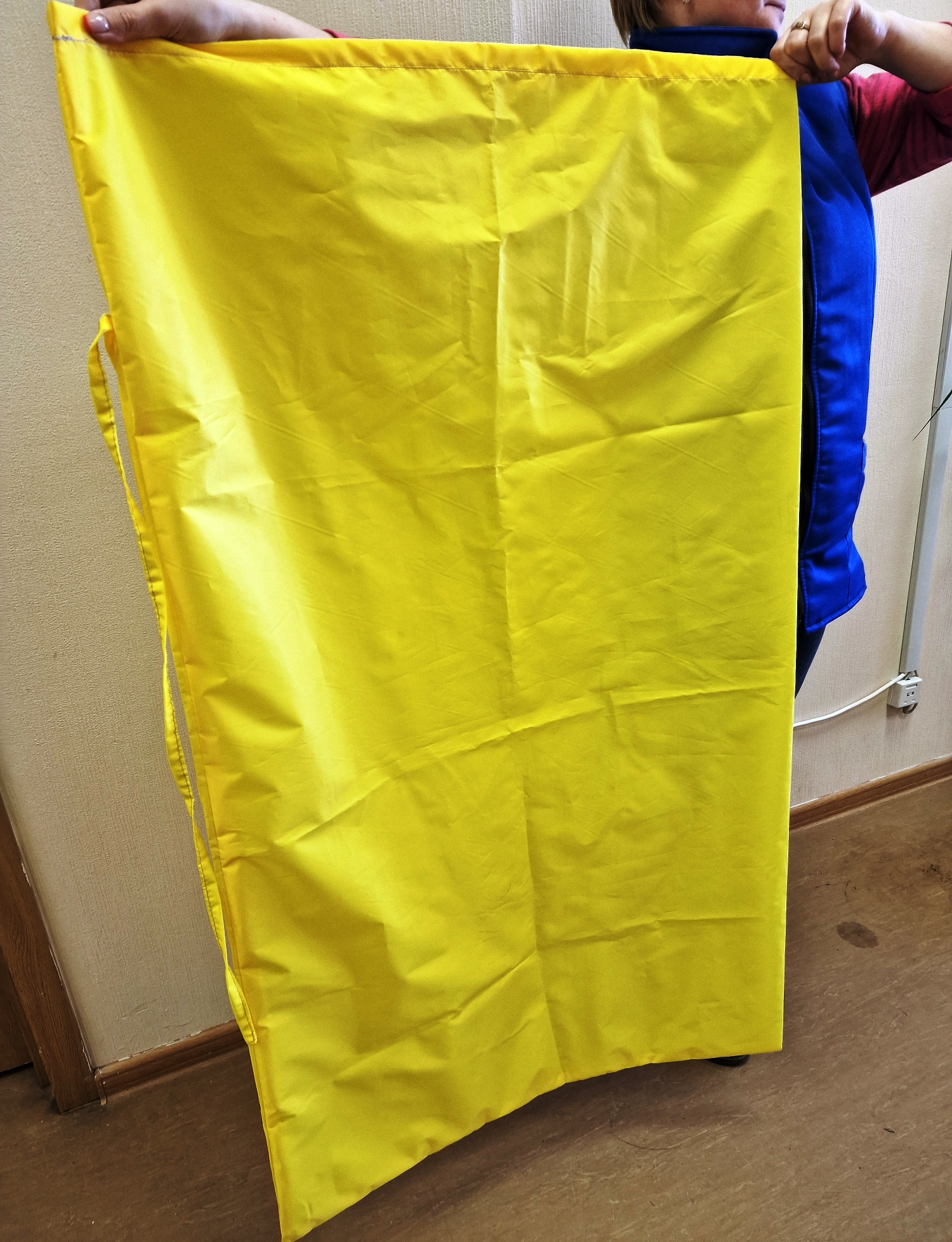 Краткое описание «Мешок для белья непромокаемый Оксфорд с завязками 120x75 желтый»