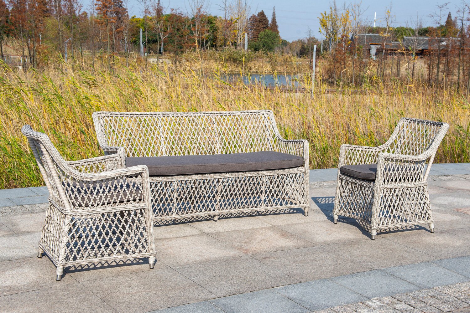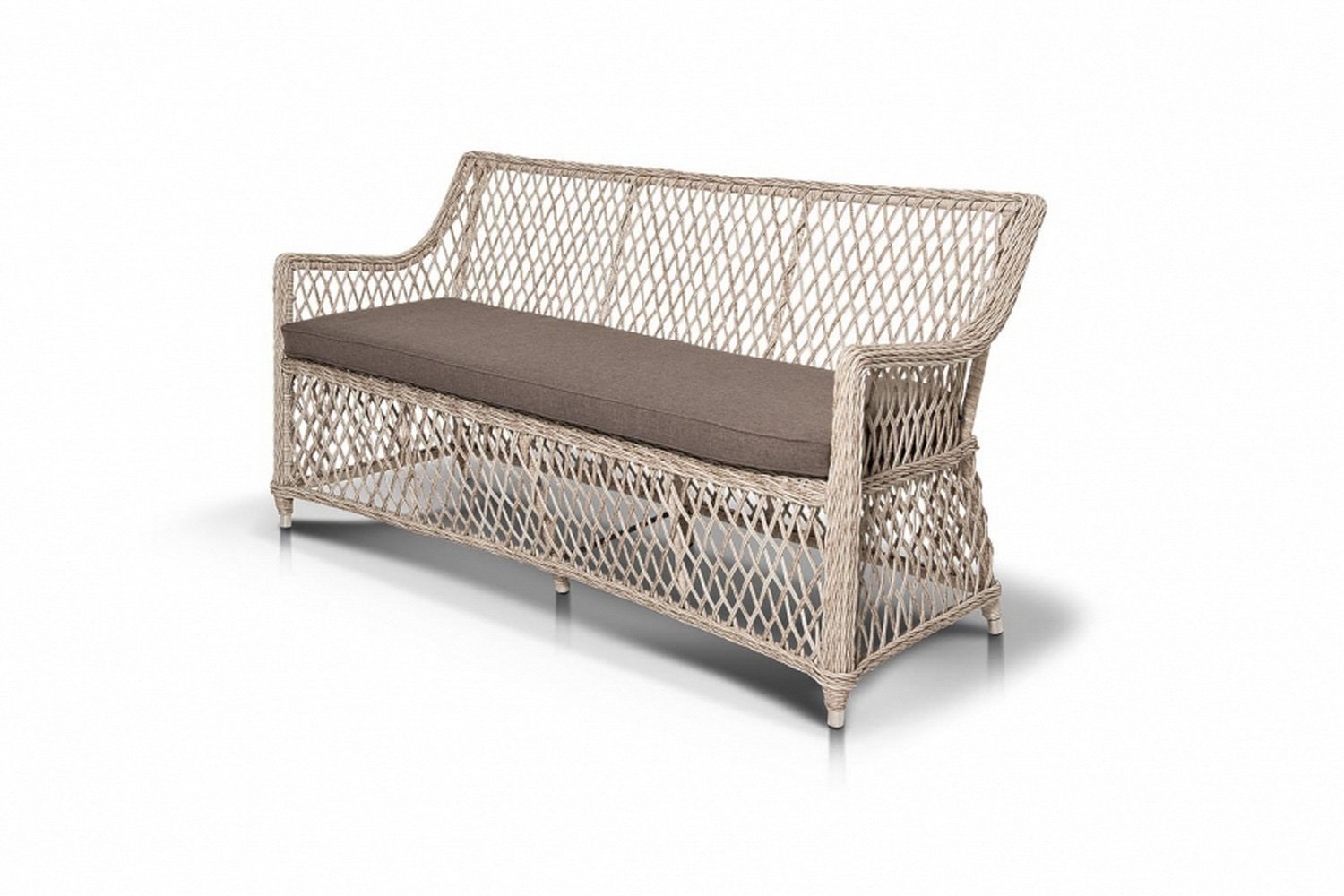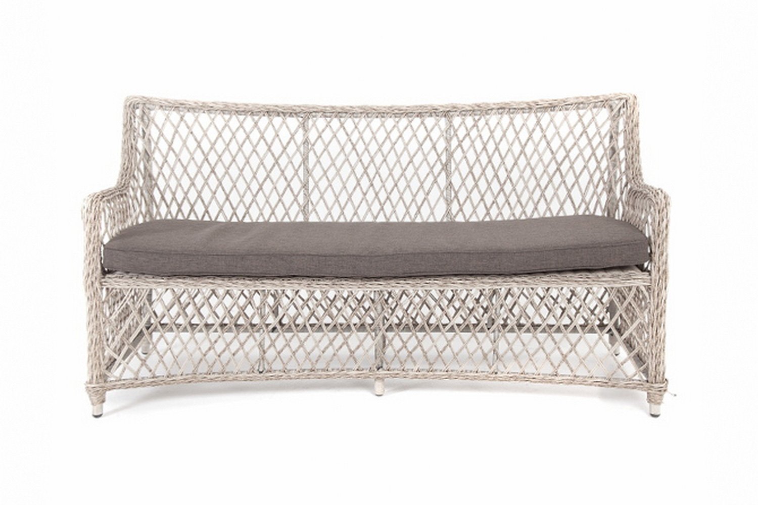 Как и любая другая мебель для отдыха, этот диван оснащен специальным матрасом, который можно использовать как в помещении, так и на улице. Съемный чехол подушки, размером 152х7х50 см, выполнен из водоотталкивающего полиэстера, что позволяет ему сохранять свежий и чистый вид надолго. Цвет чехла – серый, идеально сочетающийся с бежевой оплеткой дивана. Чехлы из полиэстера съемные, и предназначены для надежной защиты матраса от внешних разрушающих факторов и загрязнений.