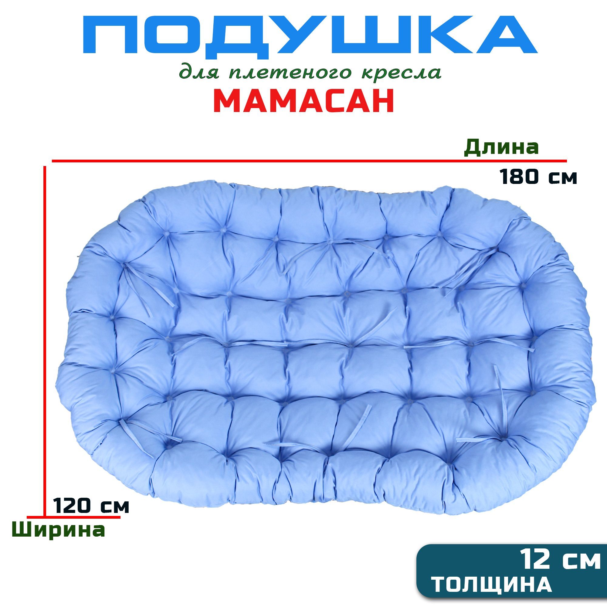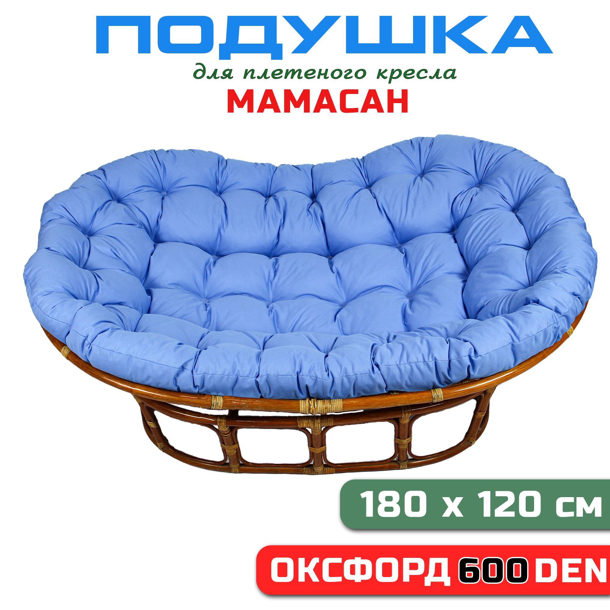 Краткое описание «Подушка для дивана Мамасан, 180х120 см, голубая (Оксфорд 600)»