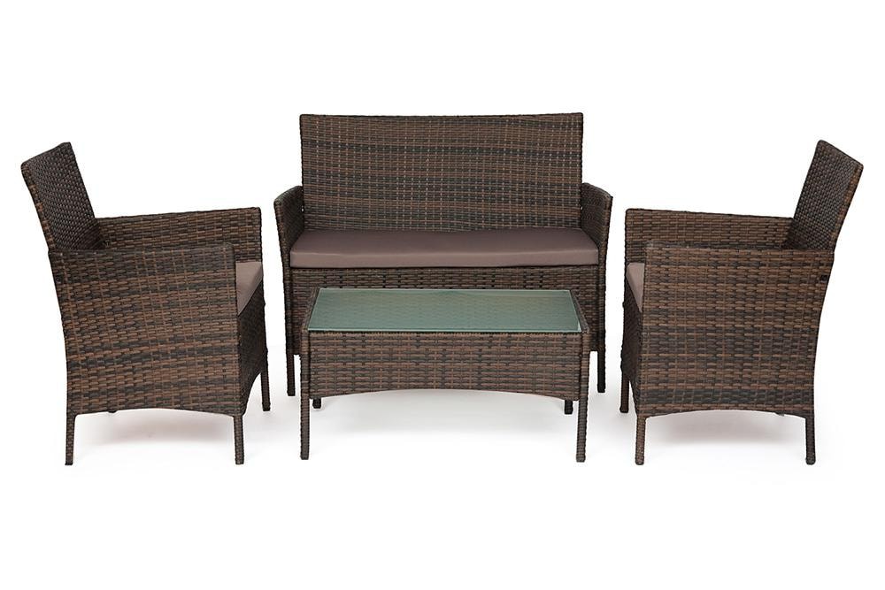 Это комплект подушек, предназначенный для плетёной садовой мебели 210013A, в комплекте находятся три подушки, две для кресел и одна для дивана. Они имеют светло-бежевый цвет, который хорошо контрастирует с чёрной садовой мебелью. Размеры дивана составляют 83х180х60 см, а размеры кресла составляют 83 х 60 х 62 см.
