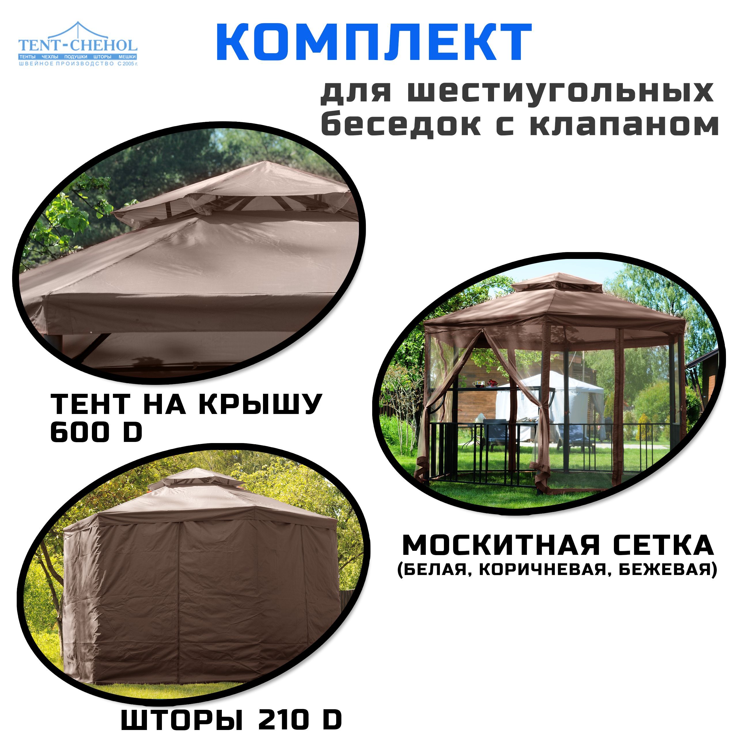 Краткое описание «Комплект для беседки: тент-крыша с клапаном + шторы + антимоскитная сетка»