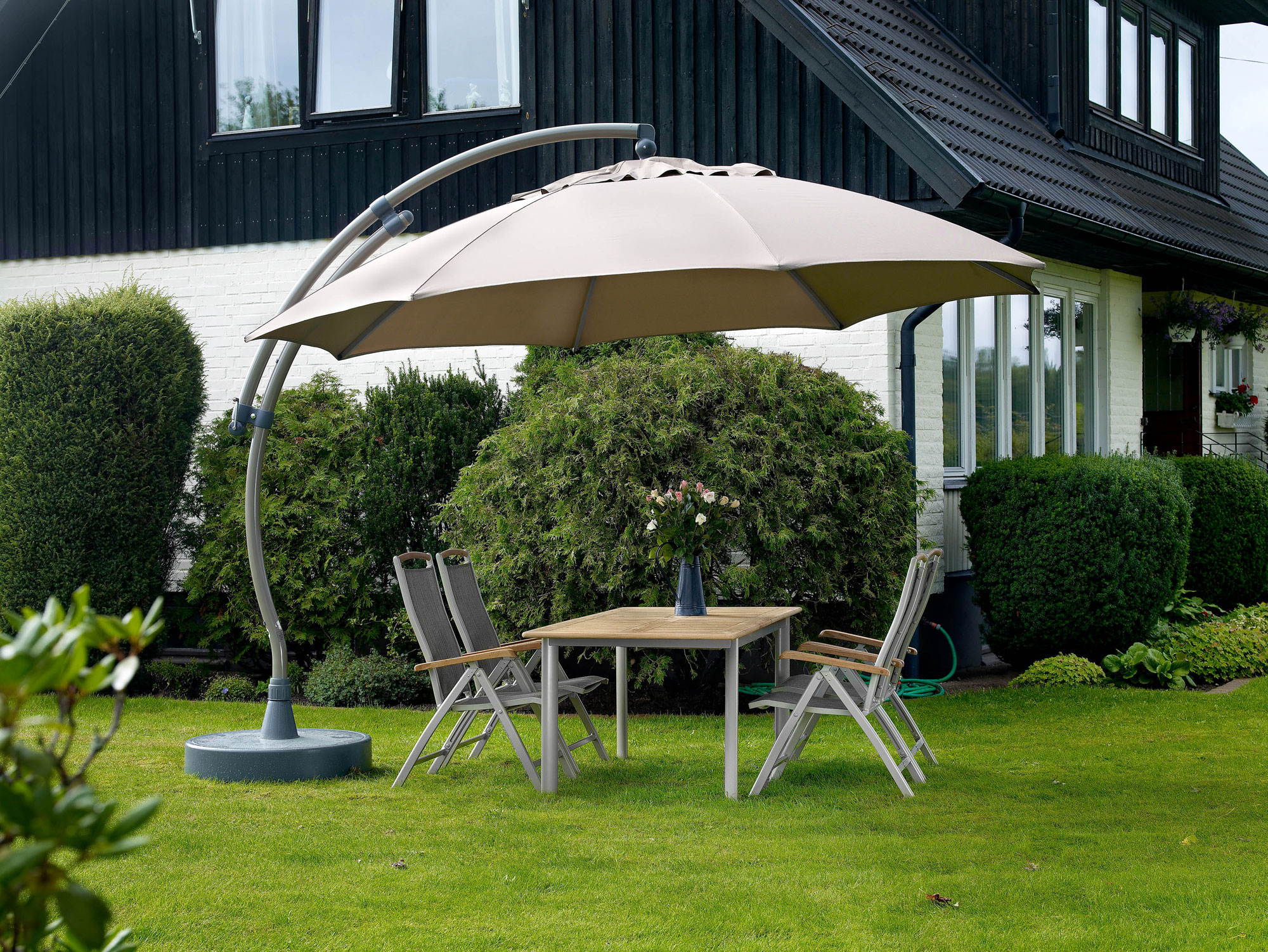 Большой садовый зонт Easy Sun создан, чтобы дарить своему обладателю спасительную тень и комфортный, приятный отдых. Крыша выполнена из полиэстера Oxford, обладающего прочностью и влагостойкостью.