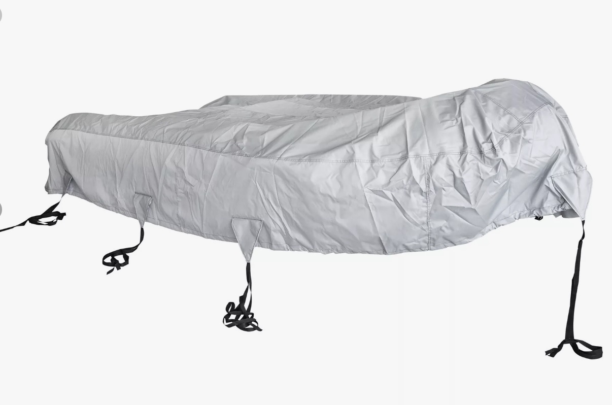 Конструкция тента представляет цельное полотно, полностью закрывающее судно по периметру от носа до конца баллонов. В случае необходимости, плавсредство можно накрывать вместе с мотором. По желанию заказчика, можно сделать технологический вырез под силовой агрегат. Контур обвода тента соответствует габаритам лодки Колибри.
