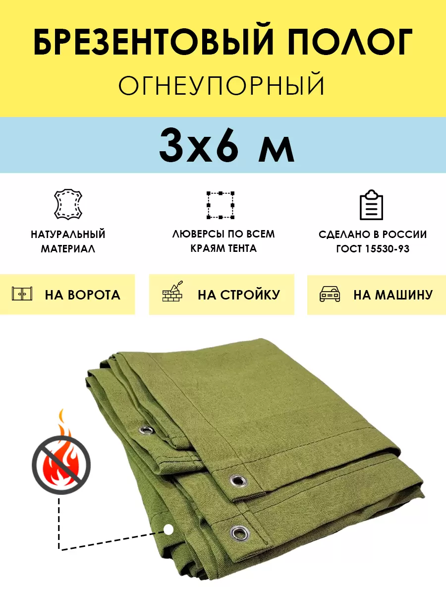 Краткое описание «Полог брезентовый огнеупорный 3x6 м, с люверсами (стандарт)»